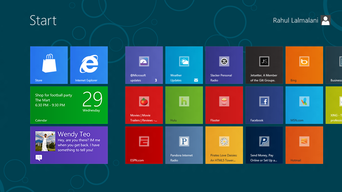 The Windows 8 Start screen is the best place to find and stay connected to all your favorite apps and content. App tiles are alive with activity and show you fresh and tailored content so you know what’s new in your world.