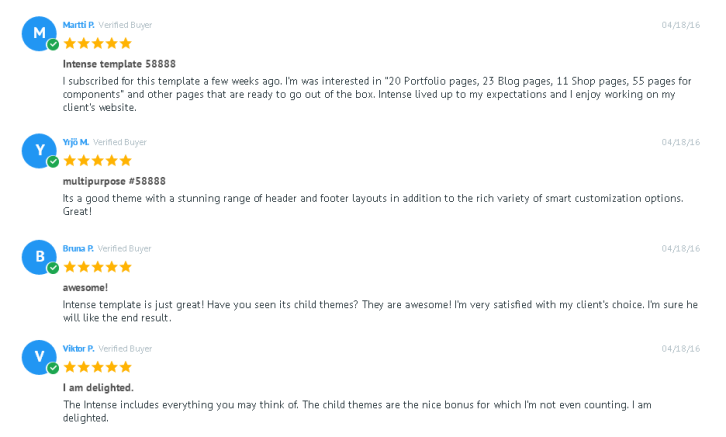 Intense seems to be a good investment. If you are a web-designer, it will supply you with high-quality website components; if you are a website owner, you will save a lot of money on the development process. Moreover, this huge package will also grow over time, providing you with more new pages, child themes and other features. Just give it a try and see for yourself!