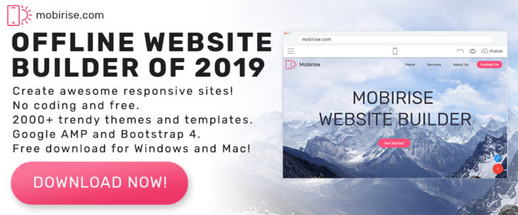 Mobirise offers an easy way to create a portfolio website you can justifiably take pride in – and profit from as well. This offline builder doesn’t tie you down to any platform, you can host your website anywhere, and it’s free for both personal and commercial use.